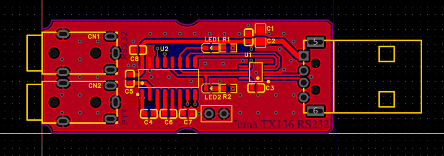 Juma TX136项目设计于2009年,当时的计算机上RS232串口是标配,但是现在的电脑上很少见这种接口。因此决定画一个USB转RS232的转接板,并专门设计用于该机器。